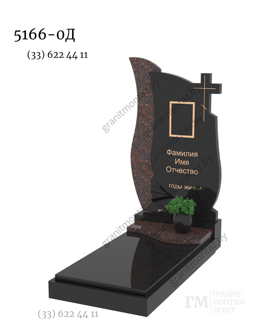 Памятник может быть изготовлен из любого вида гранита, любых размеров и толщины, а также с любым выбранным художественным оформлением.
